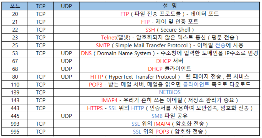 알아두면 도움되는 포트번호입니다.