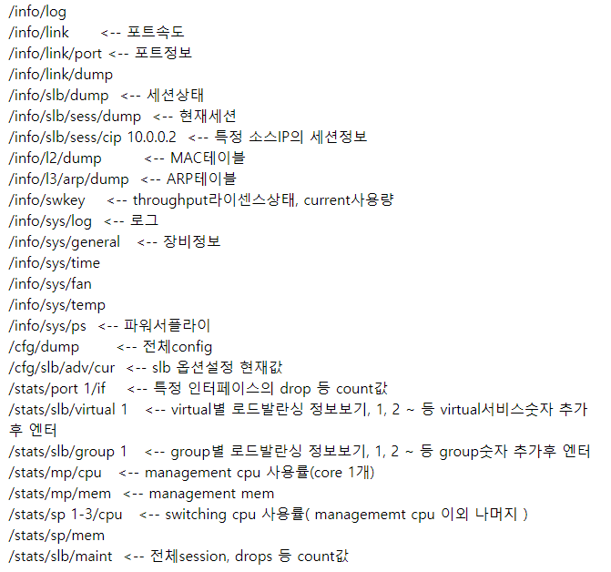 -컨피그 참고 (/l3는 없을 수도 있음 ex: /cfg/vrrp)